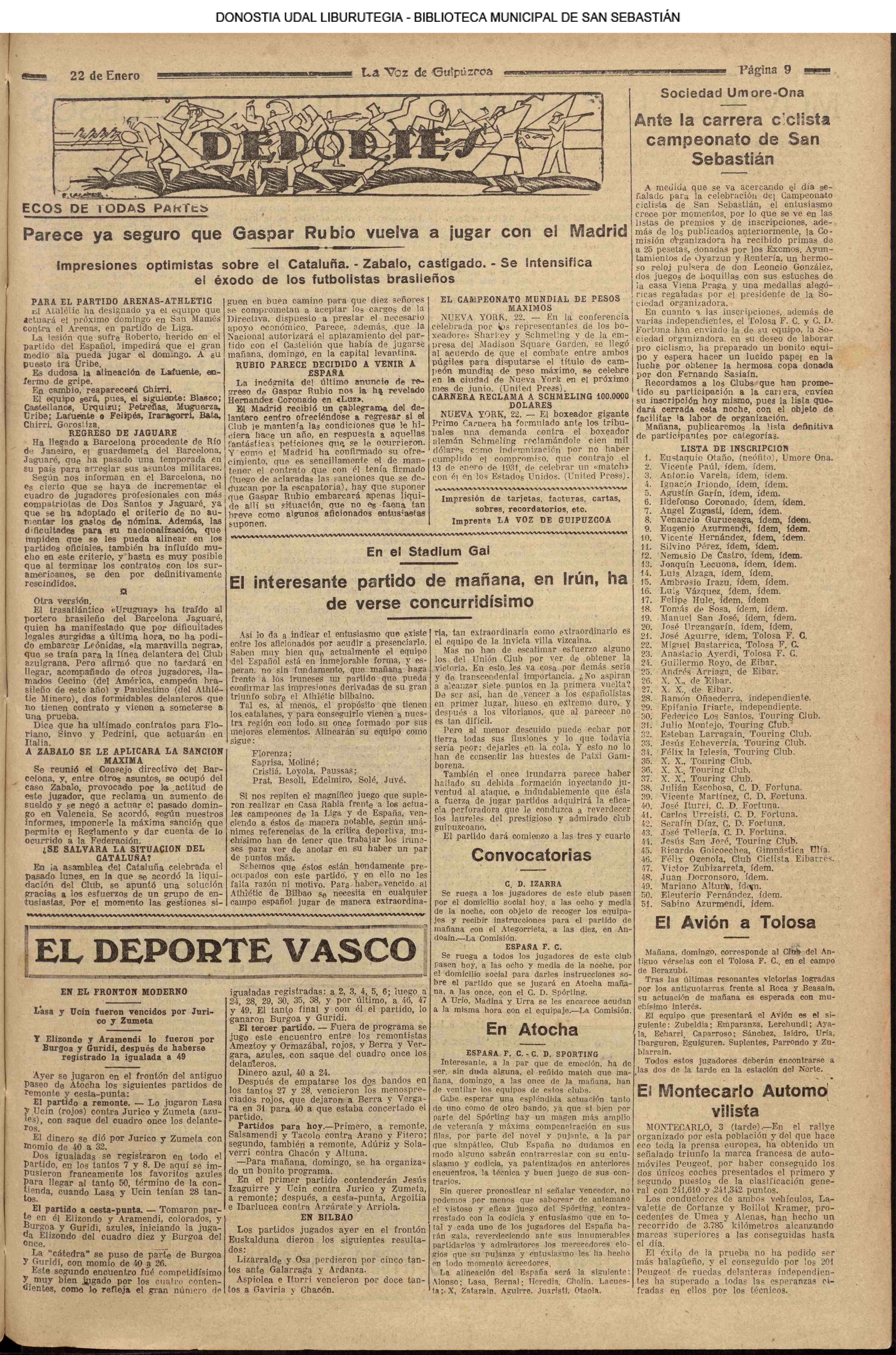 EL DEPORTE EN DONOSTIA Y SU PROVINCIA